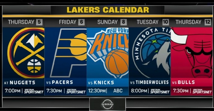湖人后续5场比赛的赛程如下: